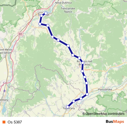 The first stop of the Os 5387 rail route is Topoľčany and the last stop is Trenčín. Os 5387 is operational during on weekends.