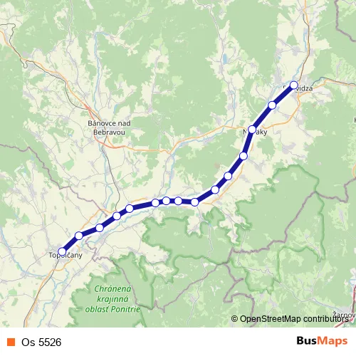The first stop of the Os 5526 rail route is Prievidza and the last stop is Topoľčany. Os 5526 is operational during everyday.