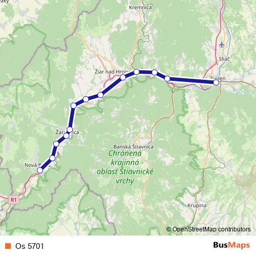 The first stop of the Os 5701 rail route is Nová Baňa and the last stop is Zvolen osob.st.. Os 5701 is operational during on weekdays.