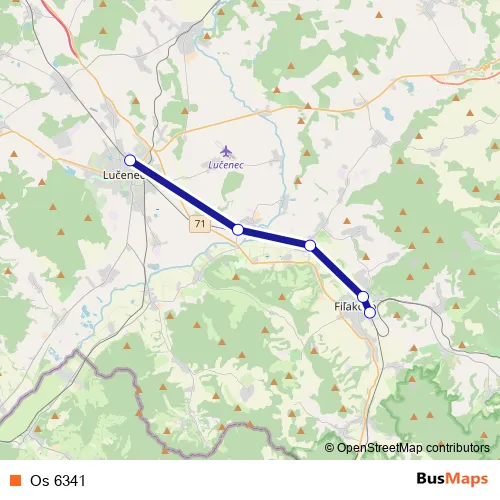 The first stop of the Os 6341 rail route is Lučenec and the last stop is Fiľakovo. Os 6341 is operational during on weekdays.