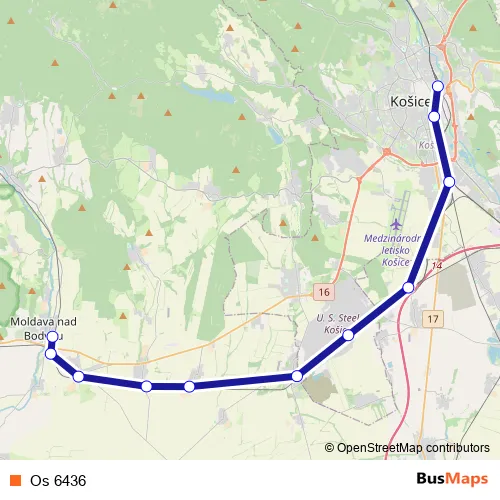 The first stop of the Os 6436 rail route is Košice and the last stop is Moldava n.Bodvou mesto. Os 6436 is operational during everyday.