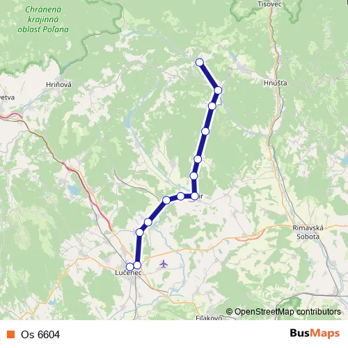 The first stop of the Os 6604 rail route is Utekáč and the last stop is Lučenec. Os 6604 is operational during everyday.