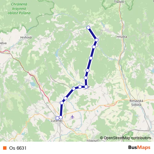 The first stop of the Os 6631 rail route is Lučenec and the last stop is Utekáč. Os 6631 is operational during everyday.
