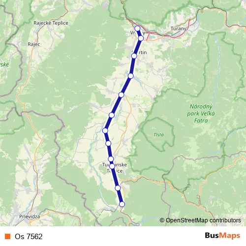Rail Os 7562 in Turcianske Teplice: Stops & Timetable