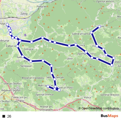 See why over 2 million users trust and consider busmaps.com as the best public transport website. busmaps gives you Dol pri Ljubljani Buses suggested routes, real-time bus tracker, line route maps in Dol pri Ljubljani, and helps to find the closest 26 bus stops near you. No internet available? Download an offline PDF map and bus schedule for the 26 bus to take on your trip.