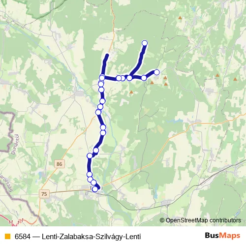 The first stop of the 6584 bus route is Lenti, autóbusz-állomás and the last stop is Lenti, autóbusz-állomás. 6584 (Lenti-Zalabaksa-Szilvágy-Lenti) is operational during everyday.