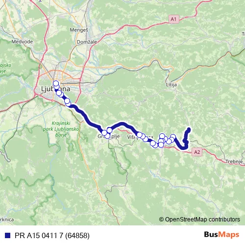 The first stop of the PR A15 0411 7 (64858) bus route is Šentvid pri Stični and the last stop is Ljubljana Ap. PR A15 0411 7 (64858) (PR A15 0411 7 (64858)) is operational during on weekdays.