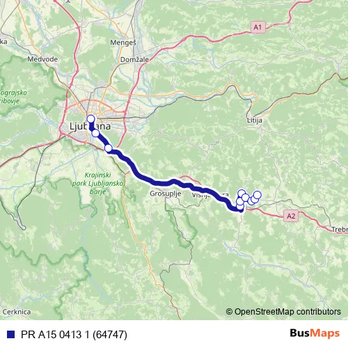 Trg Osvobodilne fronte - Dolenjska cesta - Sokolska ulica - Cesta 2. Grupe odredov - Stična - Vir pri Stični