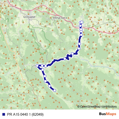 The first stop of the PR A15 0440 1 (62049) bus route is Brezje/Dobrepolju and the last stop is