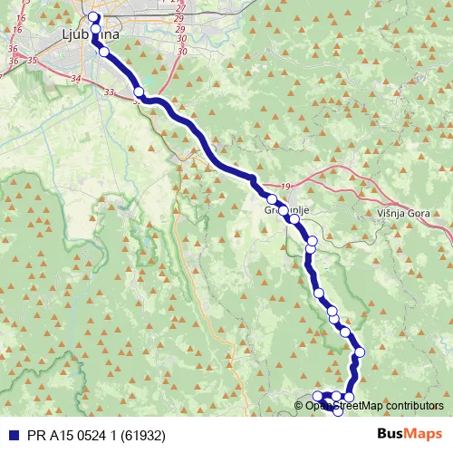 Javno podjetje Ljubljanski potniški promet d.o.o. PR A15 0524 1 (61932) bus Route Map