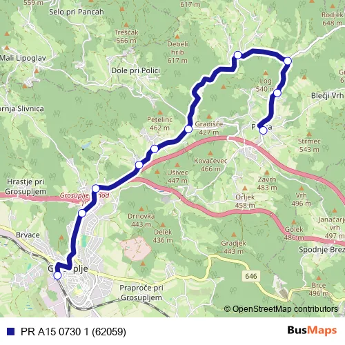 Grosuplje. PR A15 0730 1 (62059) (PR A15 0730 1 (62059)) is operational during on weekdays.