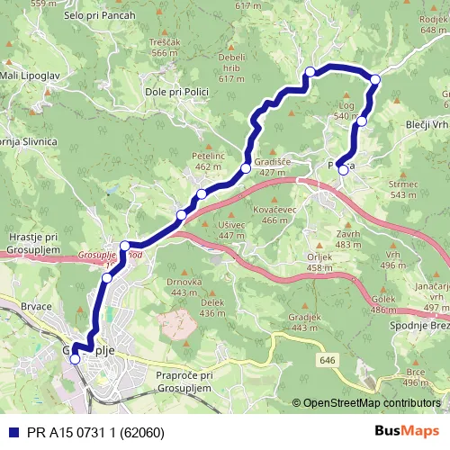 Grosuplje. PR A15 0731 1 (62060) (PR A15 0731 1 (62060)) is operational during on weekdays.