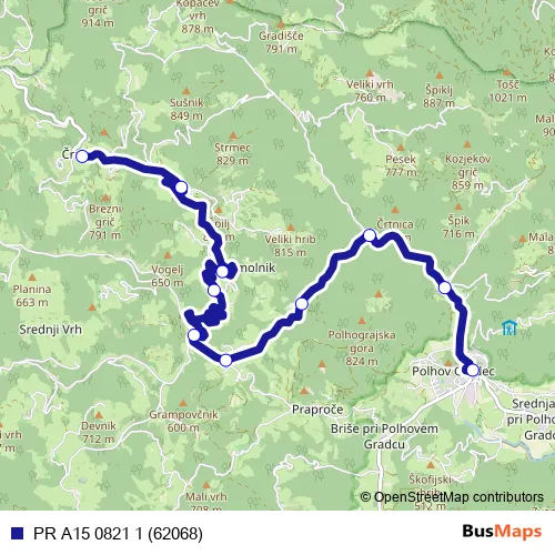 Polhov Gradec. PR A15 0821 1 (62068) (PR A15 0821 1 (62068)) is operational during on weekdays.