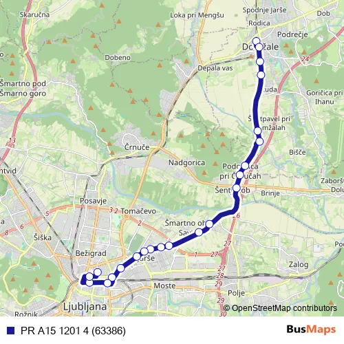 See why over 2 million users trust and consider busmaps.com as the best public transport website. busmaps gives you Ljubljana Buses suggested routes, real-time bus tracker, line route maps in Ljubljana, and helps to find the closest PR A15 1201 4 (63386) bus stops near you. No internet available? Download an offline PDF map and bus schedule for the PR A15 1201 4 (63386) bus to take on your trip.