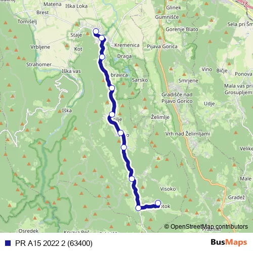 The first stop of the PR A15 2022 2 (63400) bus route is Zapotok vas and the last stop is Ig. PR A15 2022 2 (63400) (PR A15 2022 2 (63400)) is operational during everyday.
