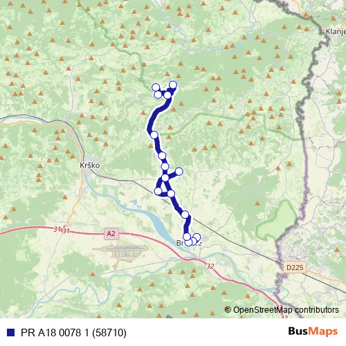 The first stop of the PR A18 0078 1 (58710) bus route is Brežice and the last stop is Pečice/Brežicah. PR A18 0078 1 (58710) (PR A18 0078 1 (58710)) is operational during on weekdays.