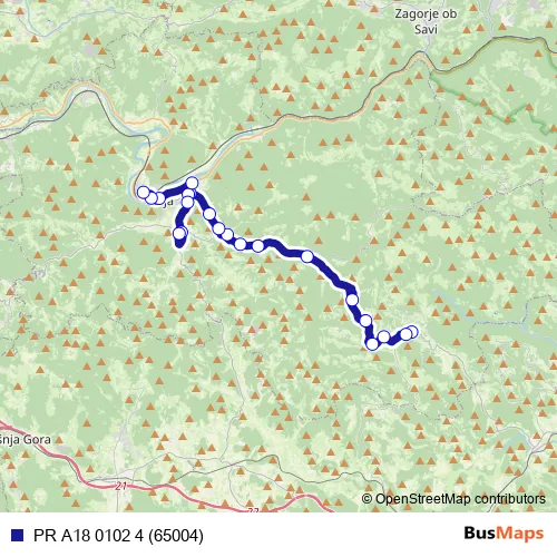 The first stop of the PR A18 0102 4 (65004) bus route is Gabrovka and the last stop is Litija Dobrava. PR A18 0102 4 (65004) (PR A18 0102 4 (65004)) is operational during on weekdays.