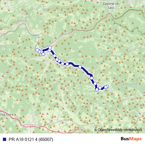 The first stop of the PR A18 0121 4 (65007) bus route is Gabrovka and the last stop is Litija Zd. PR A18 0121 4 (65007) (PR A18 0121 4 (65007)) is operational during on weekdays.