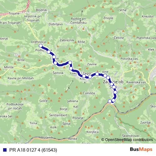 The first stop of the PR A18 0127 4 (61543) bus route is Zagorje ob S.Žp and the last stop is Orehovica/Izlakah. PR A18 0127 4 (61543) (PR A18 0127 4 (61543)) is operational during everyday.