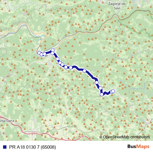 The first stop of the PR A18 0130 7 (65008) bus route is Litija Dobrava and the last stop is Gabrovka. PR A18 0130 7 (65008) (PR A18 0130 7 (65008)) is operational during on weekdays.