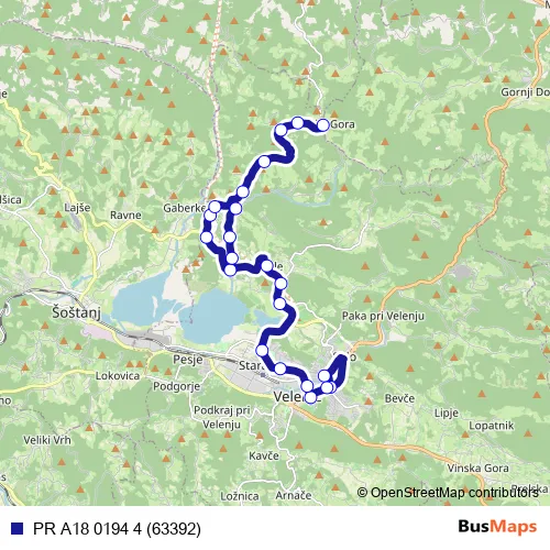The first stop of the PR A18 0194 4 (63392) bus route is Velenje and the last stop is Plešivec Graška Gora. PR A18 0194 4 (63392) (PR A18 0194 4 (63392)) is operational during on weekdays.