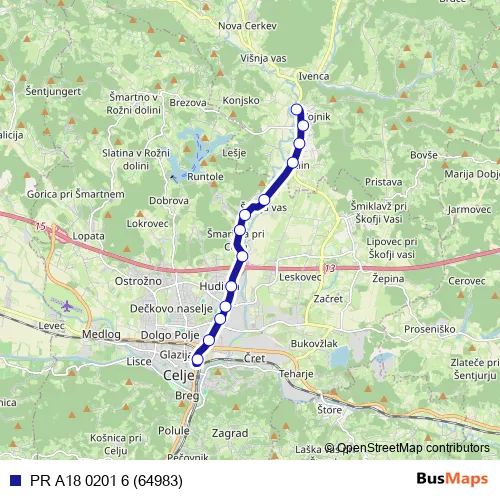 The first stop of the PR A18 0201 6 (64983) bus route is Vojnik G. and the last stop is