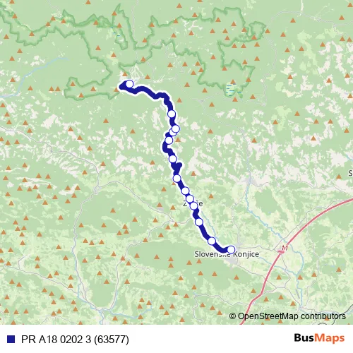 The first stop of the PR A18 0202 3 (63577) bus route is Sl.Konjice and the last stop is