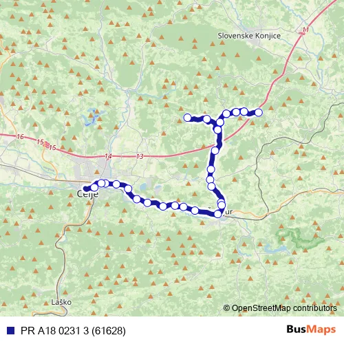 The first stop of the PR A18 0231 3 (61628) bus route is Marija Dobje and the last stop is Celje Ap. PR A18 0231 3 (61628) (PR A18 0231 3 (61628)) is operational during on weekdays.