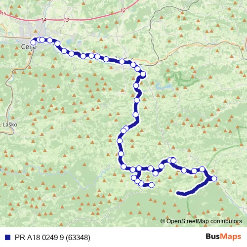 The first stop of the PR A18 0249 9 (63348) bus route is Celje Ap and the last stop is