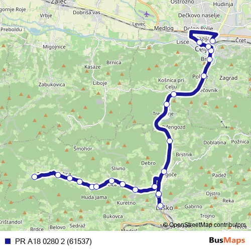 The first stop of the PR A18 0280 2 (61537) bus route is Zg.Rečica/Laškem and the last stop is Celje Ap. PR A18 0280 2 (61537) (PR A18 0280 2 (61537)) is operational during on weekdays.