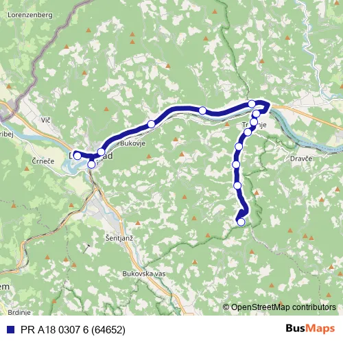 The first stop of the PR A18 0307 6 (64652) bus route is Sv.Danijel Gosnikova ž. and the last stop is Dravograd. PR A18 0307 6 (64652) (PR A18 0307 6 (64652)) is operational during on weekdays.