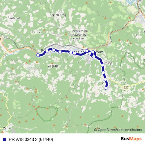 The first stop of the PR A18 0343 2 (61440) bus route is Prevalje Perzonali and the last stop is Kotlje Rimski Vrelec. PR A18 0343 2 (61440) (PR A18 0343 2 (61440)) is operational during on weekdays.