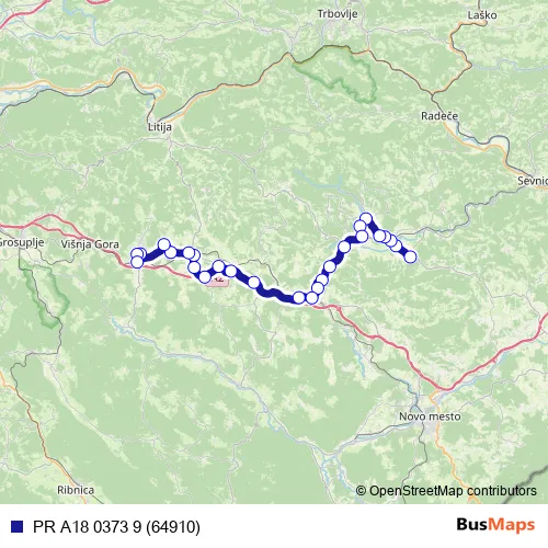 The first stop of the PR A18 0373 9 (64910) bus route is Mokronog and the last stop is Ivančna Gorica. PR A18 0373 9 (64910) (PR A18 0373 9 (64910)) is operational during on weekdays.