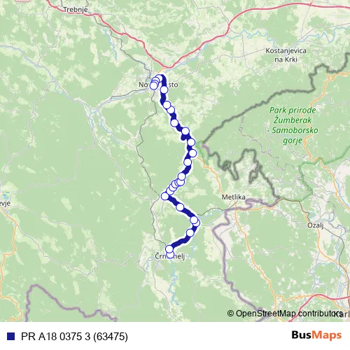 The first stop of the PR A18 0375 3 (63475) bus route is Črnomelj and the last stop is Novo mesto. PR A18 0375 3 (63475) (PR A18 0375 3 (63475)) is operational during on weekdays.