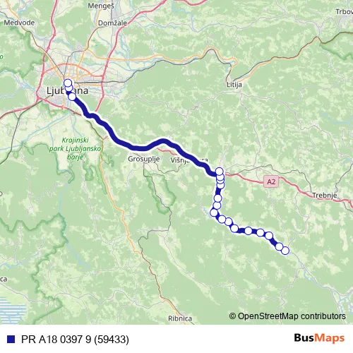 The first stop of the PR A18 0397 9 (59433) bus route is Žužemberk and the last stop is Ljubljana Ap. PR A18 0397 9 (59433) (PR A18 0397 9 (59433)) is operational during on weekdays.