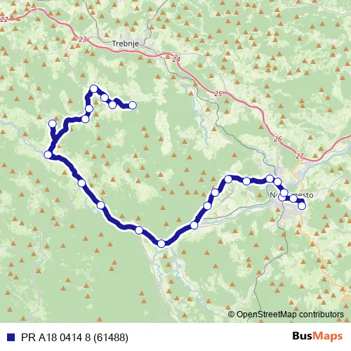 The first stop of the PR A18 0414 8 (61488) bus route is Novo mesto Revoz and the last stop is