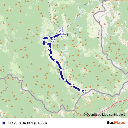 The first stop of the PR A18 0430 9 (61860) bus route is Vinica and the last stop is Črnomelj h.Lahinja. PR A18 0430 9 (61860) (PR A18 0430 9 (61860)) is operational during on weekdays.