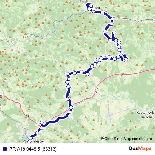 The first stop of the PR A18 0448 5 (63313) bus route is Novo mesto and the last stop is Sevnica. PR A18 0448 5 (63313) (PR A18 0448 5 (63313)) is operational during on weekdays.