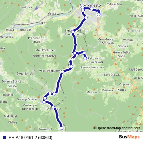 The first stop of the PR A18 0461 2 (60860) bus route is Novo mesto Revoz and the last stop is Laze/N.mestu. PR A18 0461 2 (60860) (PR A18 0461 2 (60860)) is operational during on weekdays.