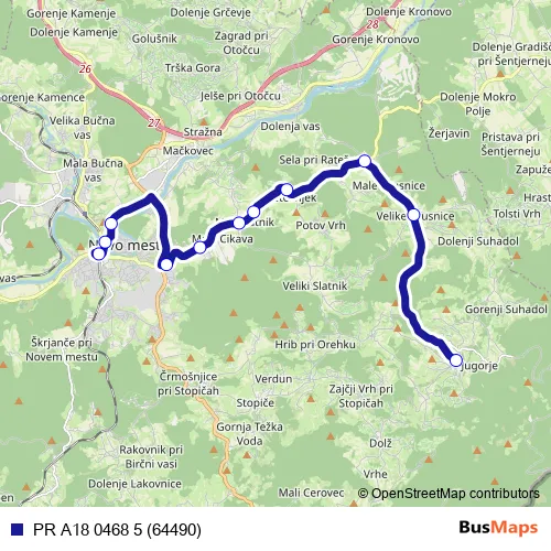The first stop of the PR A18 0468 5 (64490) bus route is Gabrje (Novo mesto) and the last stop is Novo mesto. PR A18 0468 5 (64490) (PR A18 0468 5 (64490)) is operational during on weekdays.