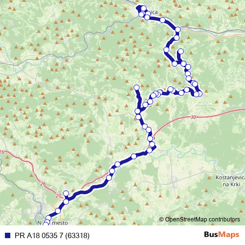 The first stop of the PR A18 0535 7 (63318) bus route is Sevnica and the last stop is Novo mesto. PR A18 0535 7 (63318) (PR A18 0535 7 (63318)) is operational during on weekdays.