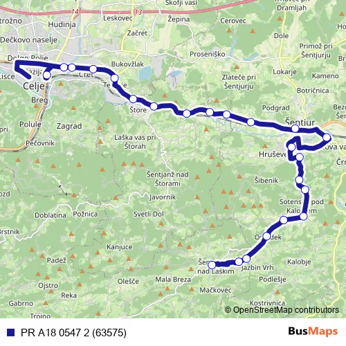 The first stop of the PR A18 0547 2 (63575) bus route is Celje Ap and the last stop is Šentrupert/Laškim. PR A18 0547 2 (63575) (PR A18 0547 2 (63575)) is operational during on weekdays.