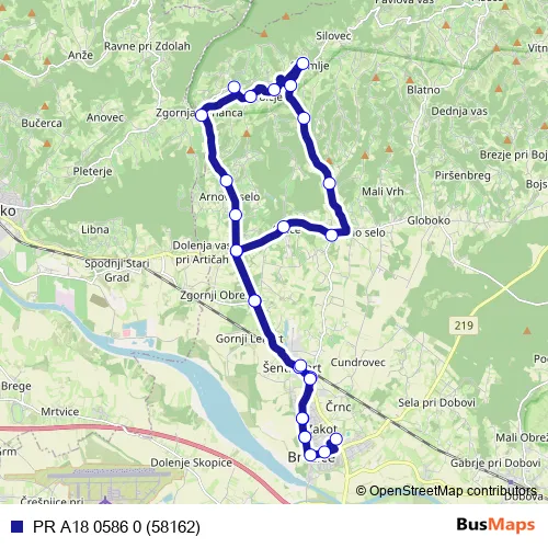 The first stop of the PR A18 0586 0 (58162) bus route is Brežice and the last stop is Brežice gim.. PR A18 0586 0 (58162) (PR A18 0586 0 (58162)) is operational during on weekdays.