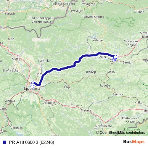 The first stop of the PR A18 0600 3 (62246) bus route is Celje Ap and the last stop is