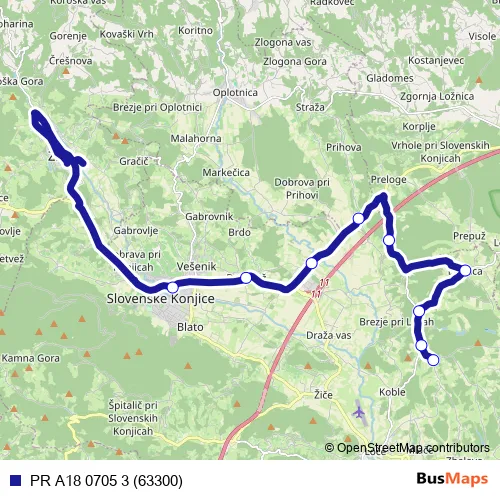 The first stop of the PR A18 0705 3 (63300) bus route is Ličenca K and the last stop is Sl.Konjice. PR A18 0705 3 (63300) (PR A18 0705 3 (63300)) is operational during on weekdays.