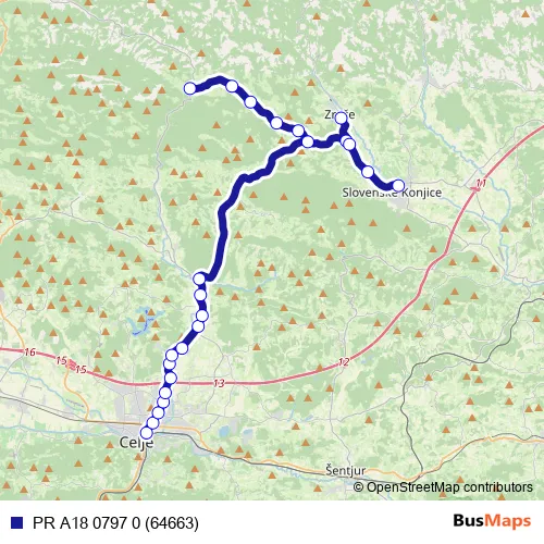 The first stop of the PR A18 0797 0 (64663) bus route is Celje Ap and the last stop is Sl.Konjice. PR A18 0797 0 (64663) (PR A18 0797 0 (64663)) is operational during on weekdays.