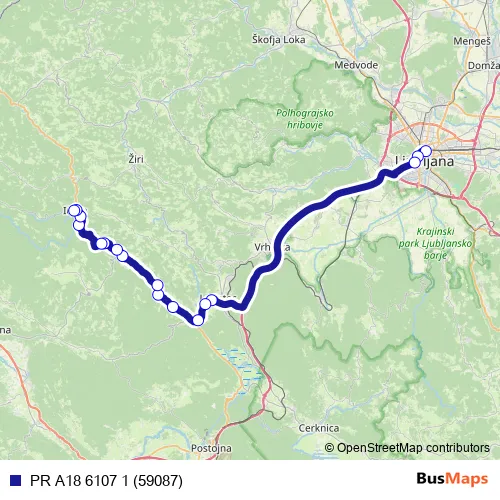 The first stop of the PR A18 6107 1 (59087) bus route is Ljubljana Ap and the last stop is