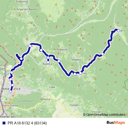 The first stop of the PR A18 6132 4 (63134) bus route is Nova Gorica Ap and the last stop is Lokve (Nova Gorica). PR A18 6132 4 (63134) (PR A18 6132 4 (63134)) is operational during on weekdays.