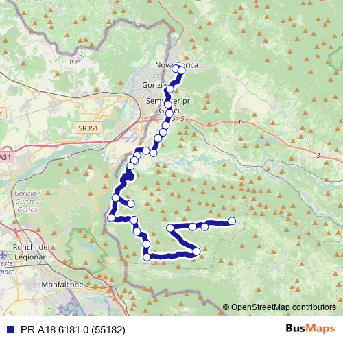 The first stop of the PR A18 6181 0 (55182) bus route is Nova Gorica Ap and the last stop is
