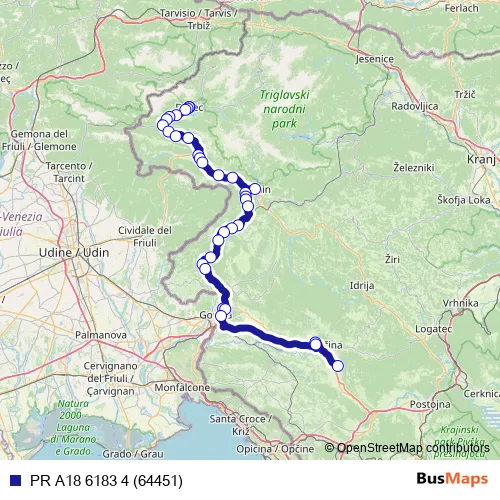 Bus PR A18 6183 4 (64451) in Bovec: Stops & Timetable